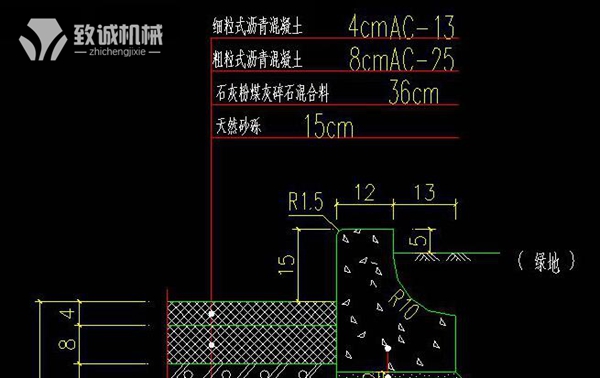 圖紙如下:由于路面上的8公分粗粒式瀝青混凝土和4公分細粒式瀝青混凝土均未施工,所有右側L型路沿石30公分高需直立于地面。